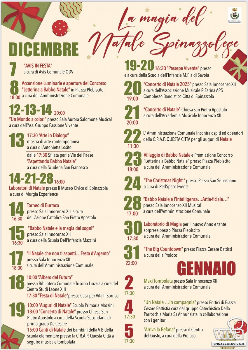 A Spinazzola torna l'atmosfera delle feste con "La magia del Natale Spinazzolese", un calendario di appuntamenti che accompagnerà la città per tutto il mese di dicembre e i primi giorni di gennaio.